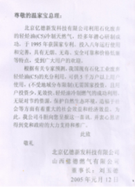 2006年3月2日建設部會議記要: 2006年3月2日建設部城市建設司在北京主持召開了“輕烴應用于城市燃氣研討會”,在研討會上形成了以下紀要:開發利用輕烴燃氣,符合能源利用政策,輕烴燃氣可作為城市燃氣的補充;并且是發改委、科技部、環保總局于2005年10月公布的《鼓勵發展的資源綜合利用和環境保護技術》公告中的技術,應給予積支持。 為進一步推進資源節約綜合利用和環境保護技術進步,加快新技術的推廣應用,引導投資方向,促進經濟社會可持續發展,2005年發展和改革委員會、科學技術部、環境保護總局對該“商用輕烴燃氣制造技術”簡介為“該技術運用物理原理,以煉油及石油化工尾氣中回收提取的輕烴為原料、根據輕烴易揮發、氣化時吸熱快的特點,經循環供料器、燃氣轉換器、調質器、氣源設備、微電腦控制器、燃氣燃燒器,不兌添加劑,在常溫低壓工況下,將輕烴完全氣化。該技術實質是可提供一套以輕烴為燃料源的自備燃氣供應系統,適合各種規模的餐廳、飯店、賓館、醫院、工廠等使用”。 請看紀要主要依據《鼓勵發展的資源綜合利用和環境保護技術》項目42項“商用輕烴燃氣制造技術” 為簡介而定很明確,不兌添加劑,在常溫低壓工況下,將輕烴完全氣化。這是“冷制”燃氣常溫低壓技術:“加溫”輕烴燃氣至今天也無能力做到! |