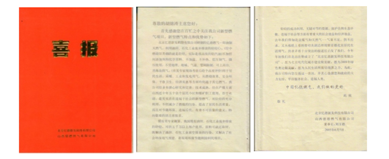 輕烴《城市燃氣》來之不易。三年辦了燃氣營業執照,五年贏得山西發改委、經貿委、化工廳、公安廳,建設廳的支持和堆廣。十二年贏得黨中央國務院的高度重視和六部委優惠政策高科技項目《鼓勵發展的資源節約綜合利用和環境保護技術項目》與《減免稅項目》的輕烴新型《城市燃氣》。